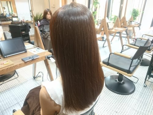 カウンセリングで髪を見させて頂いた時は、なかなかのお疲れ具合に心配になりましたが、少しでも良い髪の状態に改善できるように頑張りました。