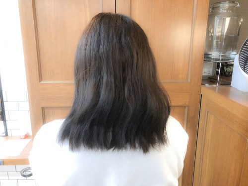 3ヵ月前に美容室で黒染めをしてもらった状態で、黒染め前はブリーチをしていたので髪は明るかったとの事でした。
